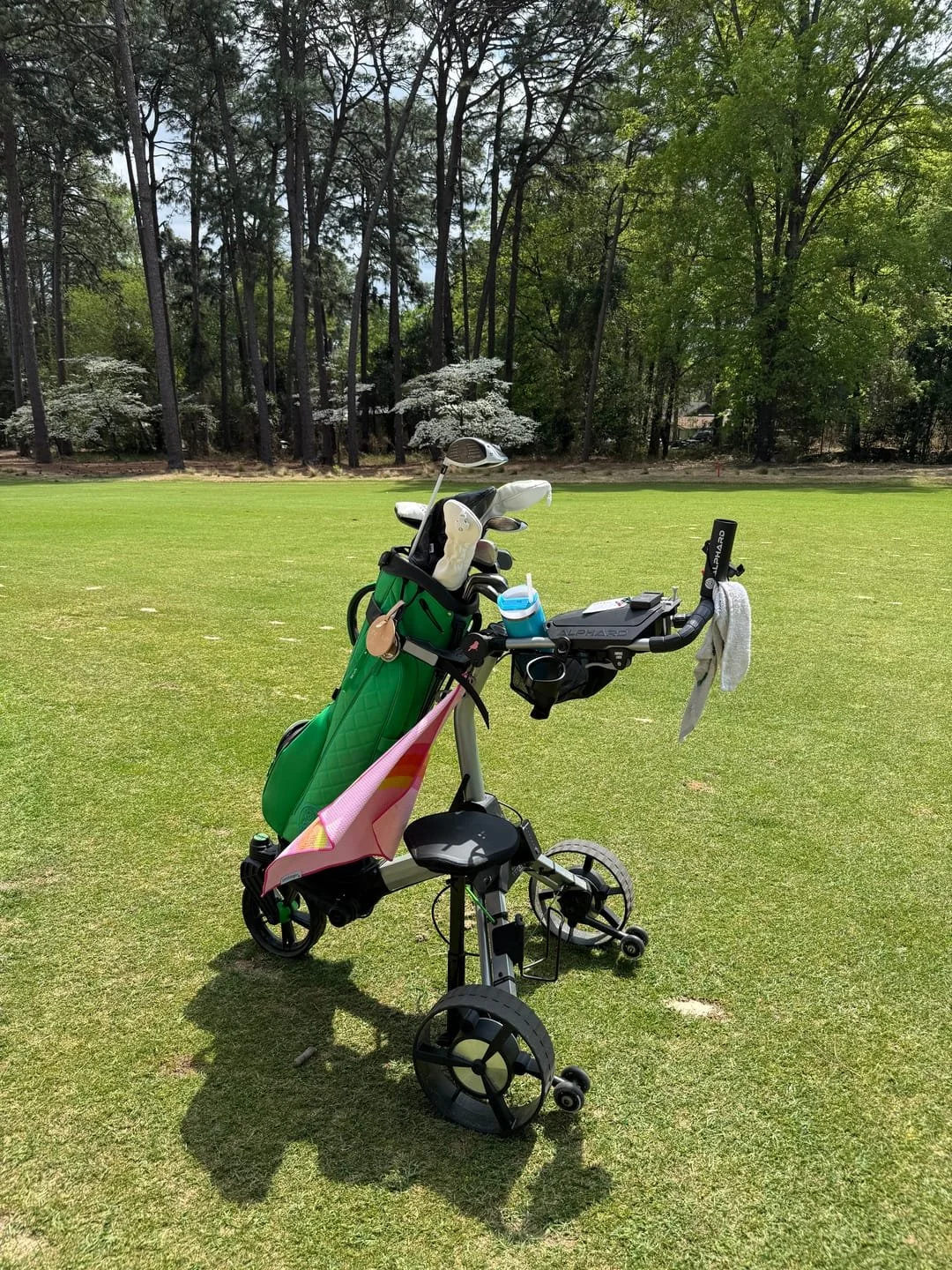 Rafhlaðan er virkilega öflug og endingargóð. Kerran er svolítið stór og þung, en 100% þess virði. Hún mun bókstaflega borga sig sjálf með sparnaði á leigugjöldum fyrir golfbíla.